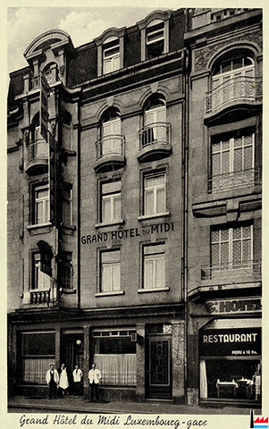 Hôtel du Midi, rue Joseph Junck, Luxembourg-gare (Carte postale: Edition Marcel Gehlen, Luxembourg; collection: industrie.lu) Louis Rossi, architecte |
