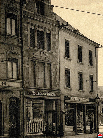 | 20.2.1969 | Versteigerung im Hotel Falstaff durch die Erben Rousseau-Kayser: Ein Geschäfts- und Wohnhaus mit Doppelfassade: Geschäftseingang: 2 place de l’Hôtel de Ville und 33 rue de la Gare; Privateingang für Wohnung: place de l’Hôtel de Ville, jetzt bekannt unter dem Namen Eurobar-Restaurant, |