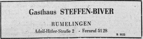| Wohnadresse im Jahre 1941 in Steinfort Leo Thiry, Mieter, 9 Hobscheiderstrasse (rue de Hobscheid) Steinfort, Besitzer Hüttenwerk, erbaut um 1907 |