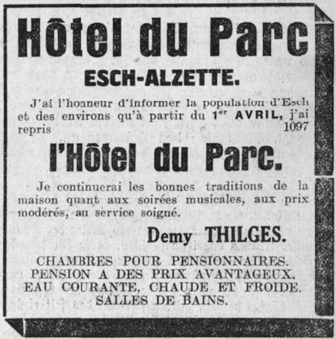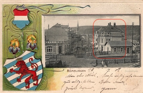 | Volkszählung Rumelange 1900 Thiry Joseph, Vater, * 8.2.1859 Forbach, Gastwirt, seit 4 Jahren anwesend Ney Caroline, Mutter, * 9.10.1859 Forbach Thiry Jules, Sohn, * 9.6.1883, Mechaniker Thiry Charles, Sohn, * 23.9.1884 Thiry Jeanne, Tochter, * 14.4.1887 Forbach Thiry Louise, Tochter, * 26.2.1895 Forbach Thiry Léon, Sohn, * 3.3.1890 Forbach, seit 5 Wochen Student in Juvigny (F) |