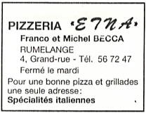 Café-Pizzeria *Etna“ Gerant Becca Franco Forzy, 4 Grand-rue, Tel 56 72 47 |