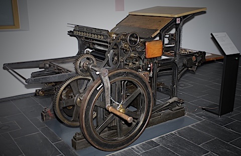 | Die Druckerpressen und Zubehör der Druckerei Breistroff. |