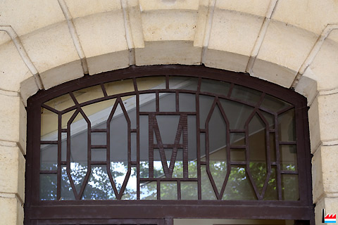 Détail de l'entrée de l'ancien Hôtel de ville (HV) (1901-1956), puis ancienne école - Oberprimärschule, rue Nicolas Pletschette, Rumelange (Photo: 19.8.2013 jmo)