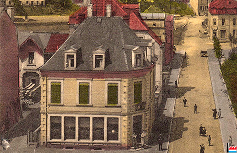 Ancienne maison de Thomas Byrne, 64 rue des Martyrs (56 rue de la Gare), Rumelange- vers 1907 (Extrait de la Carte