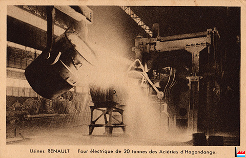 Usines Renault - Four électrique de 20 t des Aciéries d'Hagondange (Carte postale: Les Editions d'Art YVON, Paris, 15 rue Martel;