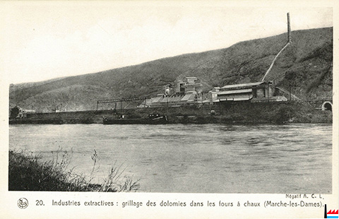 Grillage des dolomies dans les fours à chaux de la S.A. des Dolomies de Marche-les-Dames (Carte