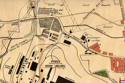 Verteilungsposten der Kraftübertragungsgesellschaft SOTEL - ARBED-Belval (Karte 1940/44; Collection: Marcel Schlim)