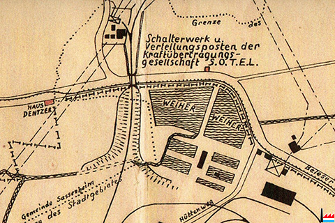 ARBED-Belval - Schalterwerk und Verteilungsposten der Kraftübertragungsgesellschaft S.O.T.E.L. (Karte 1940/44; Collection: Marcel Schlim)