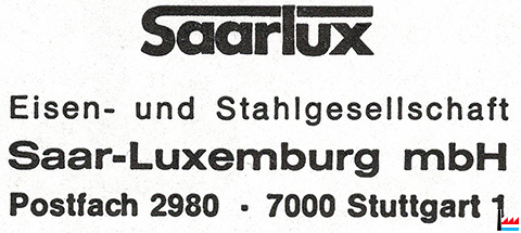 | <=1983 | ![]() Saarlux - Eisen- und Stahlgesellschaft Saar-Luxemburg mbH, Stuttgart (Collection: industrie.lu) |