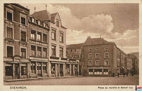 Diekirch - Place du Marché et Grand'Rue - <=1925 (Carte postale: E.A. Schaack, Luxembourg; collection: industrie.lu)