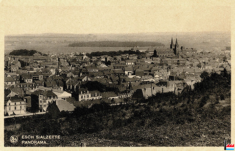 Esch/Alzette - à l'avant-plan la rue d'Audun - vers 1937 (Carte postale: Nels - E.A. Schaack, Luxembourg, N° 18; collection: industrie.lu)