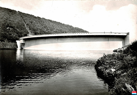 606 - Esch/Sûre - Le Barrage de la Haute-Sûre - Staumauer, Esch/Sauer - Stausee (Carte postale: E.A. Schaack, Luxembourg; Collection: industrie.lu)