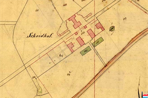 | >1823 | Antoine Pescatore avait pris sa retraite dans sa propriété du Scheid, près de Sandweiler, qu’il avait acquise en 1823 (ainsi qu’une partie du Gruenewald), et à l’aménagement de laquelle il consacrait les dernières années de son existence. (Wehenkel, A., Chronique de la famille Pescatore, A.L.G.H., Luxembourg, 2002) |