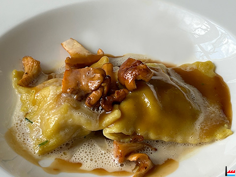 Kalbsbries-Ravioli; Wild-Dorade, Pfifferlinge, Krustentierjus; u.v.m. (Photos: 11.9.2022 jmo)