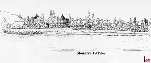 | ~1840 | ![]() Schloss Monaise, bei Trier (Detail der Zeichnung: X. Becker, Trier) ![]() Schloss Monaise, bei Trier (Zeichnung: X. Becker, Trier) |