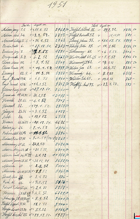 Abrechnungen der Schmiede Schmit, Bissen für das Jahr 1951 - Detail von Mme Broqueville, Château de Birtrange (Collection: industrie.lu)