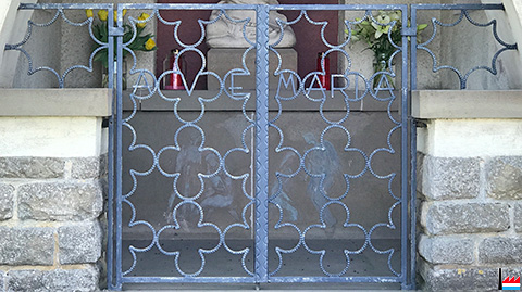 Kunstschlosserarbeit mit Ave Maria von Aloyse Decker-Schmit, Bissen an der Kapelle Paul Ley, Roost (Photos: 17.5.2017 / Collection: industrie.lu)