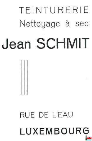 | 1950 | Teinturerie - Nettoyage à sec Jean Schmit, rue de l'Eau, Luxembourg |
