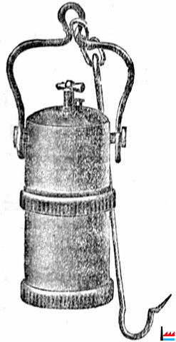 Wo Mangel an Petroleum herrscht leistet die bewährte und erprobte luxemburger Carbid-Gruben-Lampe vortreffliche Dienste