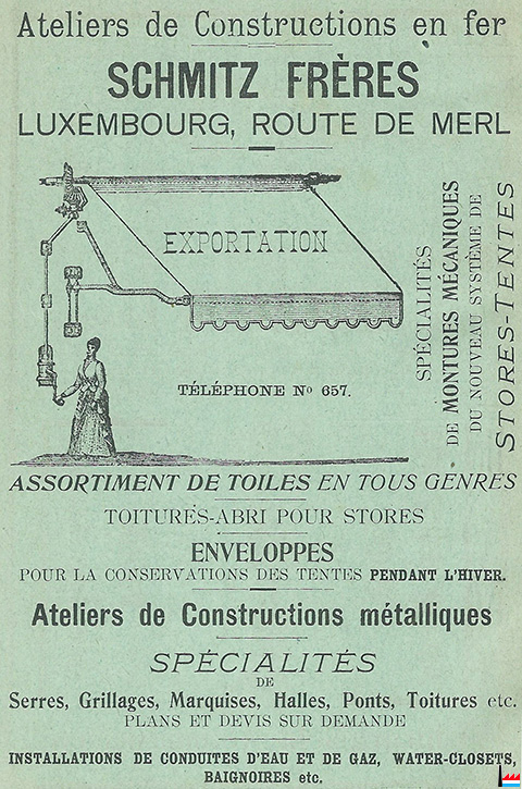 | 27.6.1910 | Schmitz frères, route de Merl, près Luxembourg (commune de Hollerich). Entreprise de toutes