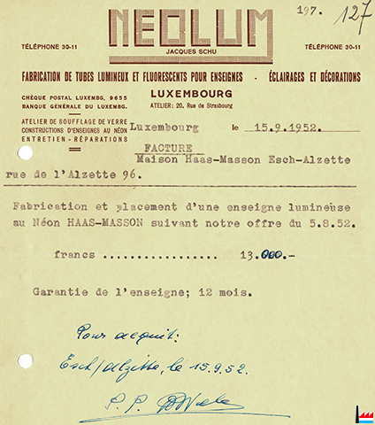![]() NEOLUM, Luxembourg, 20 rue de Strasbourg - Jacques Schu - 9.1952 (Collection: industrie.lu) |