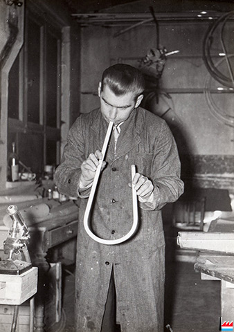 | 195? | Der deutsche Glasbläser Heinz ??? + Daubenfeld Roger, Geselle wechseln zusammen von Schaack zu NEOLUM |