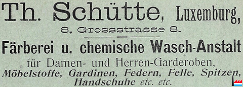 | 1904 | Färberei u. chemische Wasch-Anstalt Théodore. Schütte, Luxemburg |