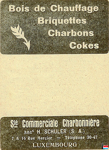 | <=1948 | Société com. charbonnière anc. H. Schuler s.àr.l. 16 rue Mercier |