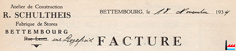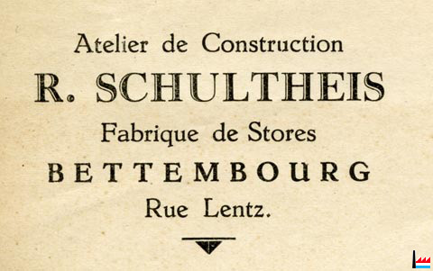 | 9.12.1934 | ![]() Atelier de Construction R. Schultheis - Fabrique de Stores (Collection: industrie.lu) Rue Lentz Bettembourg |
