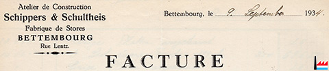 | 9.9.1934 | ![]() Atelier de Construction Schippers & Schultheis - Fabrique de Stores (Collection: industrie.lu) Rue Lentz - Bettembourg |