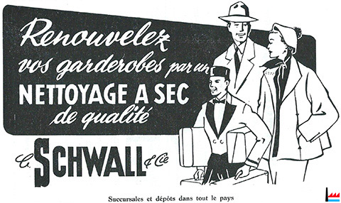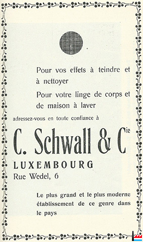 1917 - Färberei u. chemische Wäscherei C. Schwall & Cie - Wedelstrasse 6 (Source: John Pickels - Kome’de’steck an 3 Akten vum René Leclère opgeféiert am gro’ssen Teater zu Letzebuerg am Joer 1917; Collection Charles-Louis Aschman, Luxembourg)