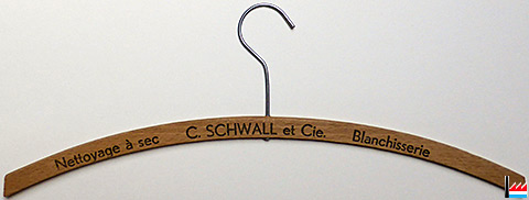 Nettoyage à sec C. SCHWALL et Cie - Blanchisserie - Cintre publicitaire en bois (Collection Philippe Aschman)