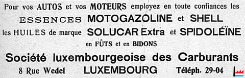| 31.3.1920 | Fondation / Gründung: Société Luxembourgeoise des Carburants - SOLUCAR e.a. par: Charles Schwall |
