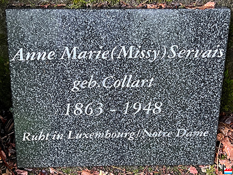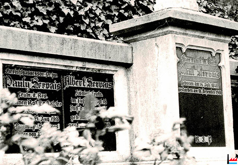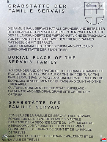 ![]() Grabmal Paul Servais (+ 18.12.1908), Waldfriedhof, Ehrang / Quint, Friedhofstraße (Photos: 14.9.2022 jmo) + (Archives Famille Servais, Luxembourg) |
