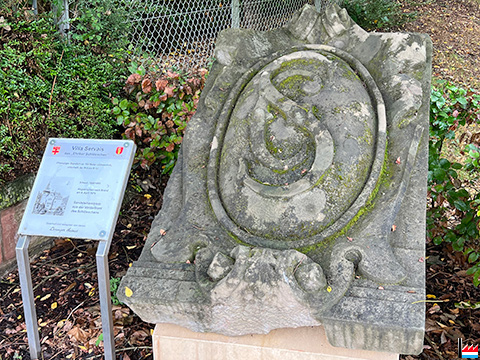 ![]() Monument - Das Servais - Collart - Emblem der Villa Servais-Collart (Ehriker Schlösschen). Ehranger Straße 230, neben der Brücke der B52 (Photos: 14.9.2022 jmo) |