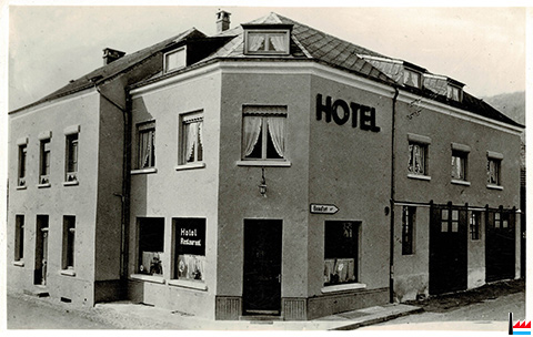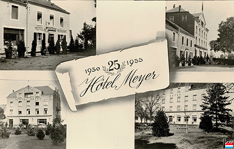 Hôtel Meyer, Befort - Beaufort - 25 ans - 1955 (Carte postale: Edit.: Nic. Sibenaler, Luxembourg; collection: industrie.lu)