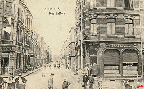 rue Lefèvre (= rue du Brill), Esch/Alzette (Carte postale: G. Sluse, Marbrier, Esch/Alzette; Collection: industrie.lu)