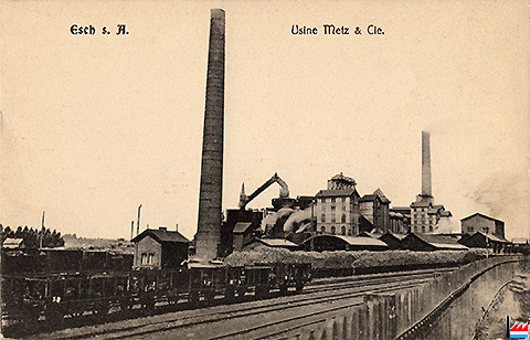 D'Metzeschmelz - Usine Metz & Cie, Esch/Alzette (Carte postale: G. Sluse, Marbrier, Esch/Alzette; Collection: industrie.lu)