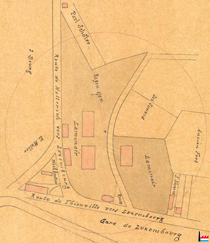 | 11.1888 | Man ist eben damit beschäftigt, die letzten Reste der ehemaligen Hochöfen in Hollerich zu zerstören. Seit dem Stillstehen genannten Werkes und der Hollericher Walzwerke sind die Folgen der dadurch entstandenen großen Arbeitslosigkeit in hiesiger Gegend sehr fühlbar geworden. Die Gesellschaft (Champagnerfabrik) E. Mercier u. Co. aus Luxemburg hat das Terrain mit den Gebäulichkeiten erworben. Es soll daselbst eine Glasfabrik errichtet werden. Die Gebäulichkeiten und das Terrain des Walzwerkes wurden von einer deutschen Konkurrenzgesellschaft erworben, um anderweitige Konkurrenz zu beseitigen. Die Gebäulichkeiten sind demoliert, und will die Gesellschaft das sehr geräumige Terrain in Parzellen als Bauplätze verkaufen. (LW: 26.11.1888) |