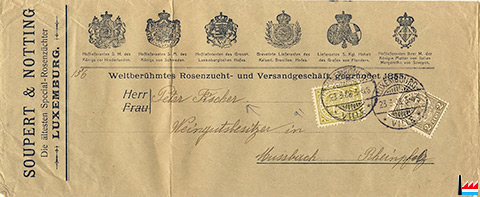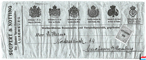 Soupert & Notting, Die ältesten Special-Rosenzüchter Luxemburg - 1908 - an Peter Fischer, Weingutbesitzer, Mussbach (Collection: Henri Kugener)