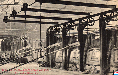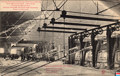 Spiegelglaswerke zu Porz: Halle der Giessöfen (Postkarte: