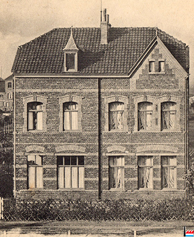 Spiegelglaswerke zu Porz: Verwaltungsgebäude, Seite zur Kolonie (Postkarte: