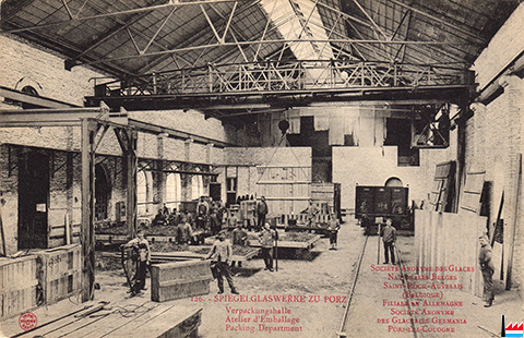 Spiegelglaswerke zu Porz: Verpackungshalle (Postkarte:
