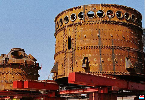 Deux parties du blindage du haut-fourneau 2 de Stahlwerke Bremen reconstruit