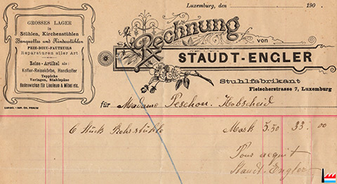 | <=1913 | Staudt - Engler, 7 rue de la Boucherie, Luxembourg Fabricant de chaises |