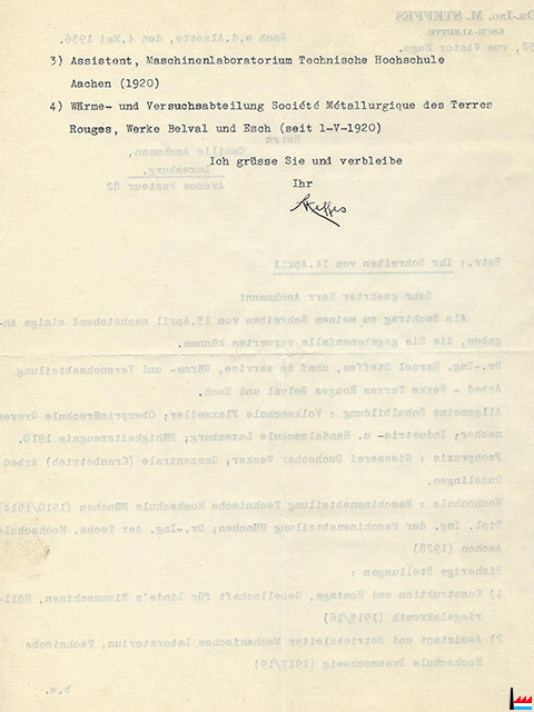 | 1.5.1919 - 30.4.1920 | Steffes Marcel, ständiger Assistent des Maschinenlaboratoriums der Technischen Hochschule Aachen | ||