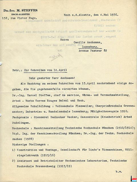 | <=1942 | Steffes Marcel, Betriebschef ARBED-Belval - Wärme- und Versuchsstelle | ||
