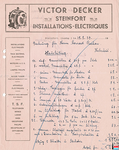 ![]() Installations électriques Decker Victor, Steinfort - 1934 (Collection industrie.lu) |