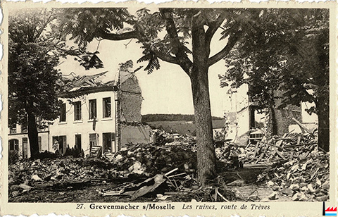 27. Grevenmacher, route de Trèves - les ruines (Carte postale: Photo Sterba, Grevenmacher - Tél: 52; Collection: industrie.lu)