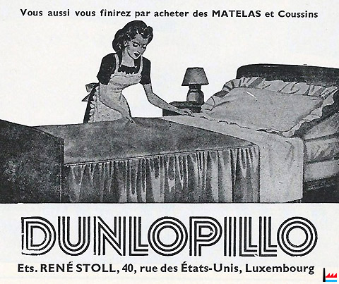 | Fernand Stoll, fils du fondateur, reprend la direction de la société au sortir de la deuxième guerre mondiale. La société se lance alors dans la fabrication des premiers matelas en latex Dunlopillo. |